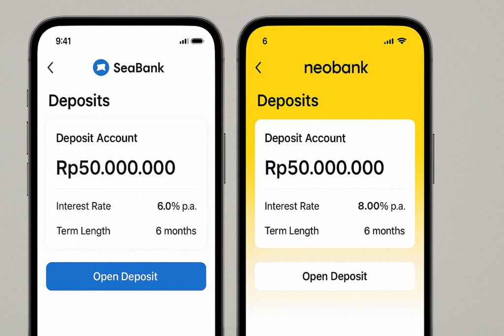 Selisih bunga tipis, jadi pilih berdasarkan experience yang Anda inginkan. Mau lihat bunga masuk tiap hari? Neo Bank. Mau integrasi dengan ekosistem digital yang lebih luas? SeaBank.